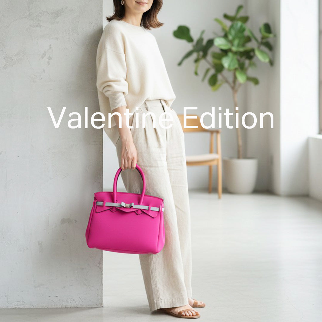 丸みのあるフォルムが女性らしい雰囲気を演出するミニボストン。コンパクトながら、長財布や携帯が入るサイズ感に仕上げました。