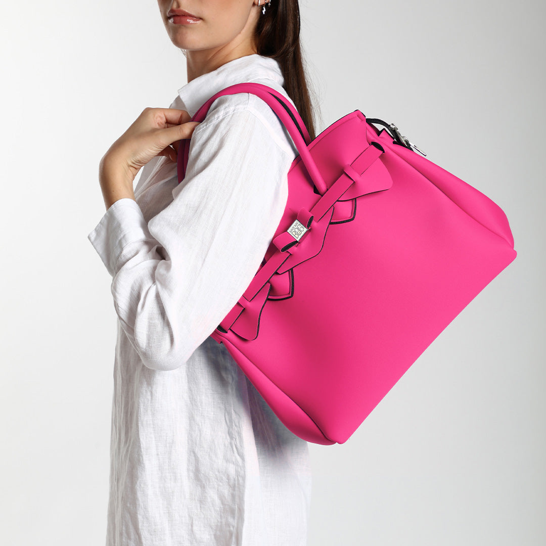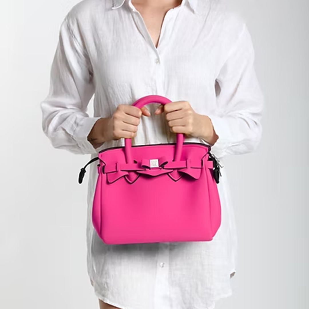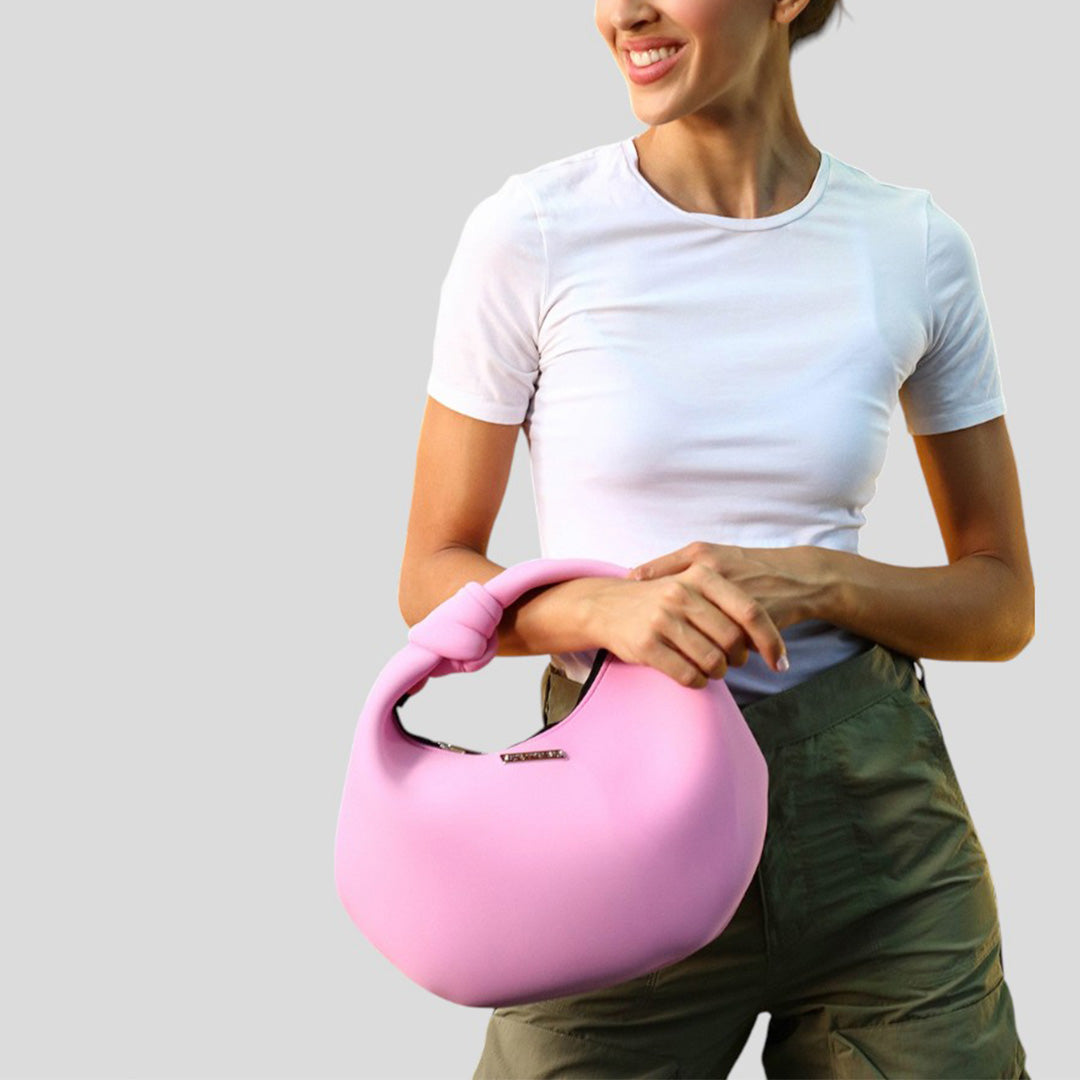 丸みのあるフォルムが女性らしい雰囲気を演出するミニボストン。コンパクトながら、長財布や携帯が入るサイズ感に仕上げました。