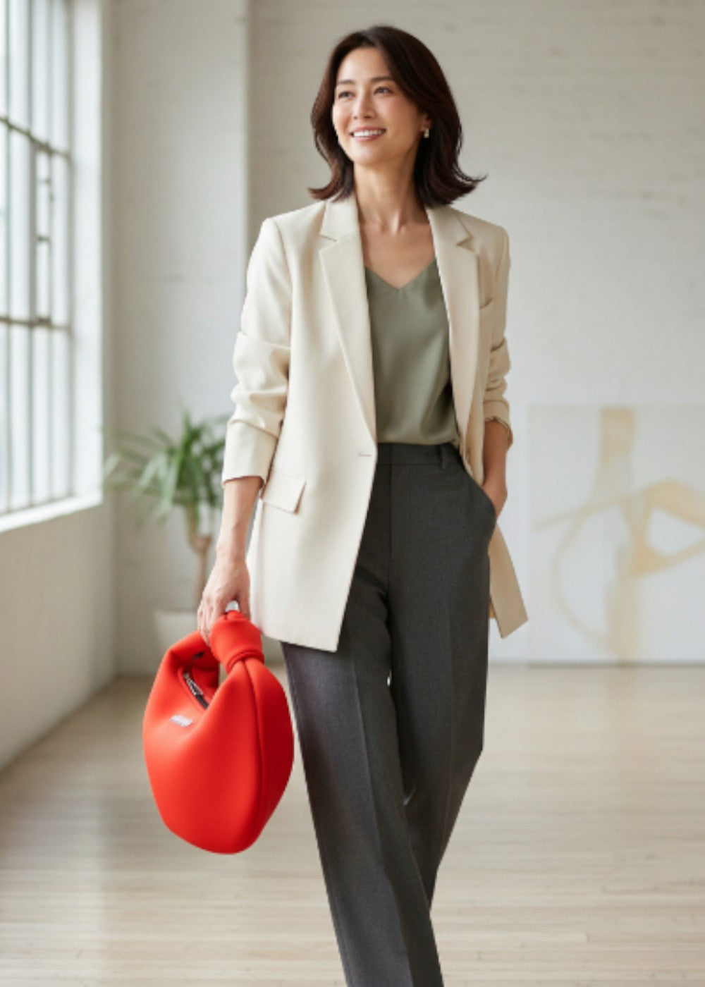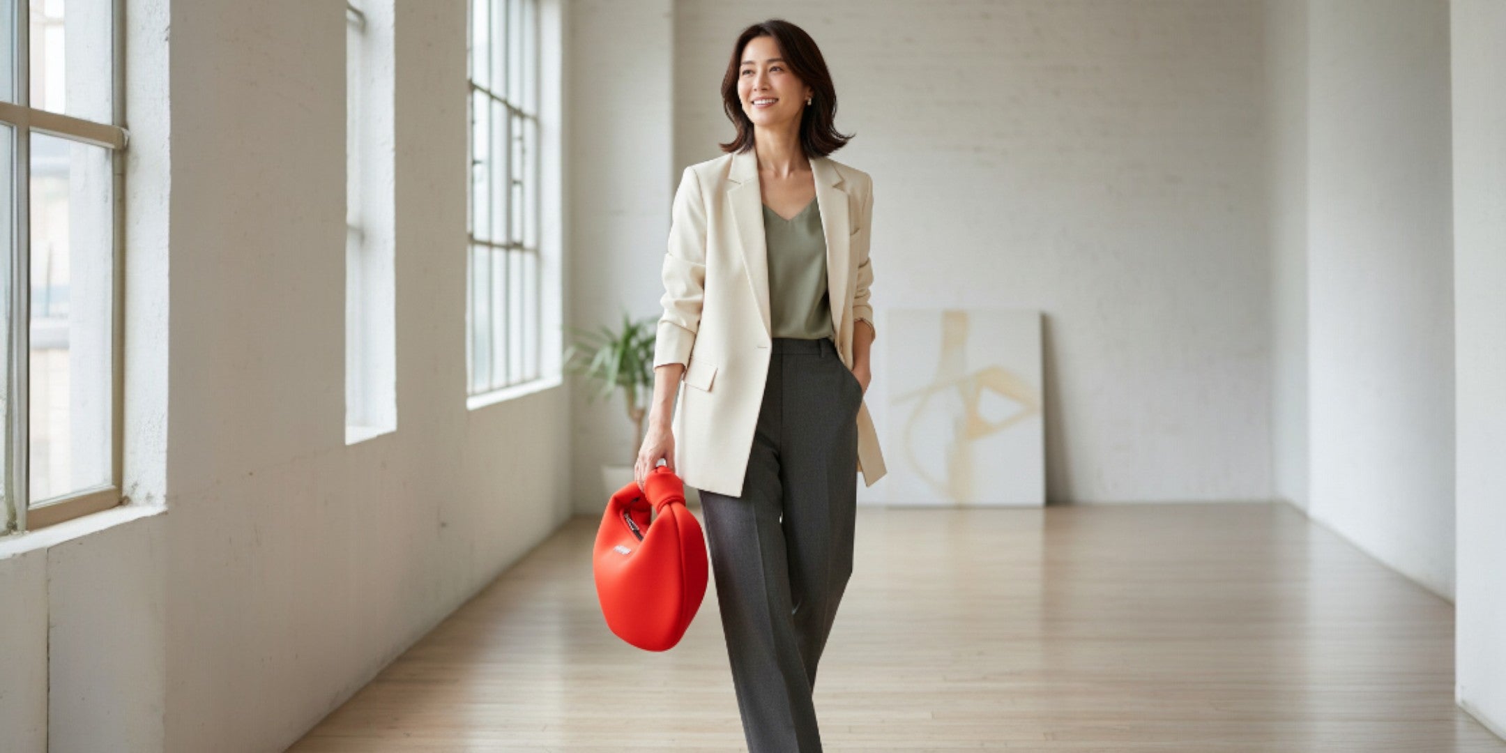 結び目のようなノットディテールがアクセントとなり、シンプルな中にさりげない個性をプラス。デイリーからお出かけまで、幅広く活躍してくれる万能バッグです。