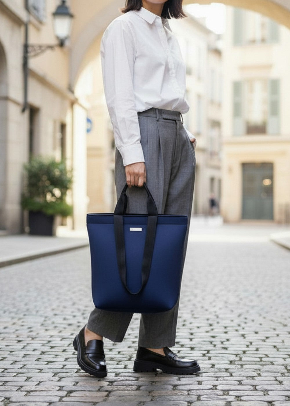 縦型シルエットが美しい。A4もPCも入る、軽やか通勤トート。